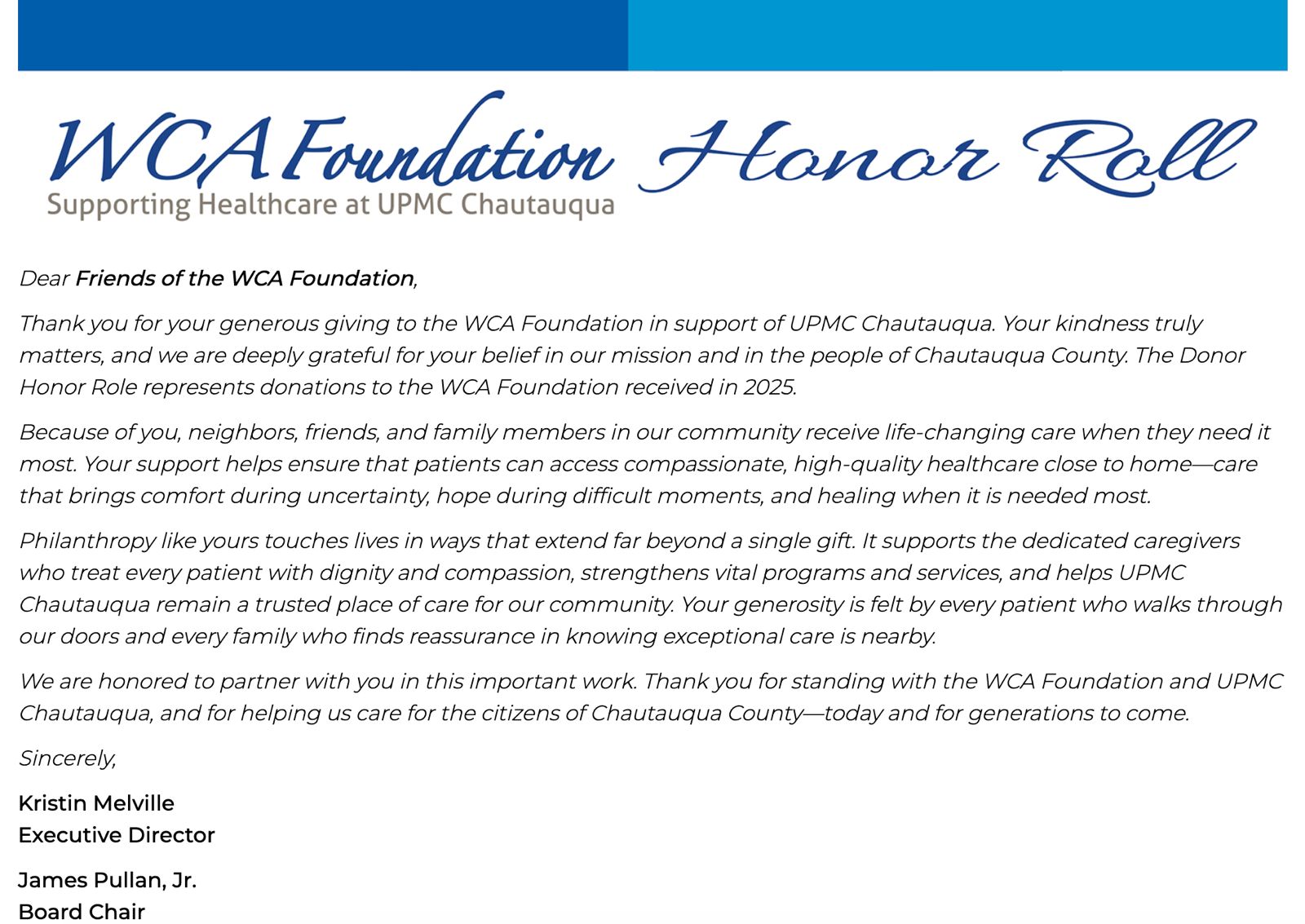WCA Foundation’s Historic Investment Advances Health care at UPMC Chautauqua